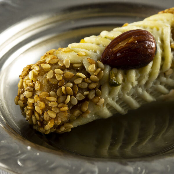 Ingrediënten: tarwebloem, plantaardige boter, suiker, water, amandelpoeder, honing, oranjebloesemwater en amandelen.