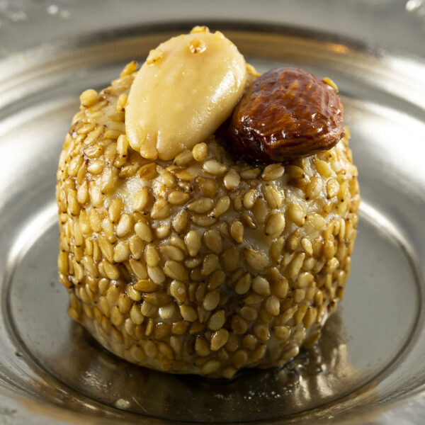 Ingrediënten: tarwebloem, plantaardige boter, suiker, honing, water, amandelpoeder, vanillearoma, oranjebloesemwater, sesamzaad en eiwit.